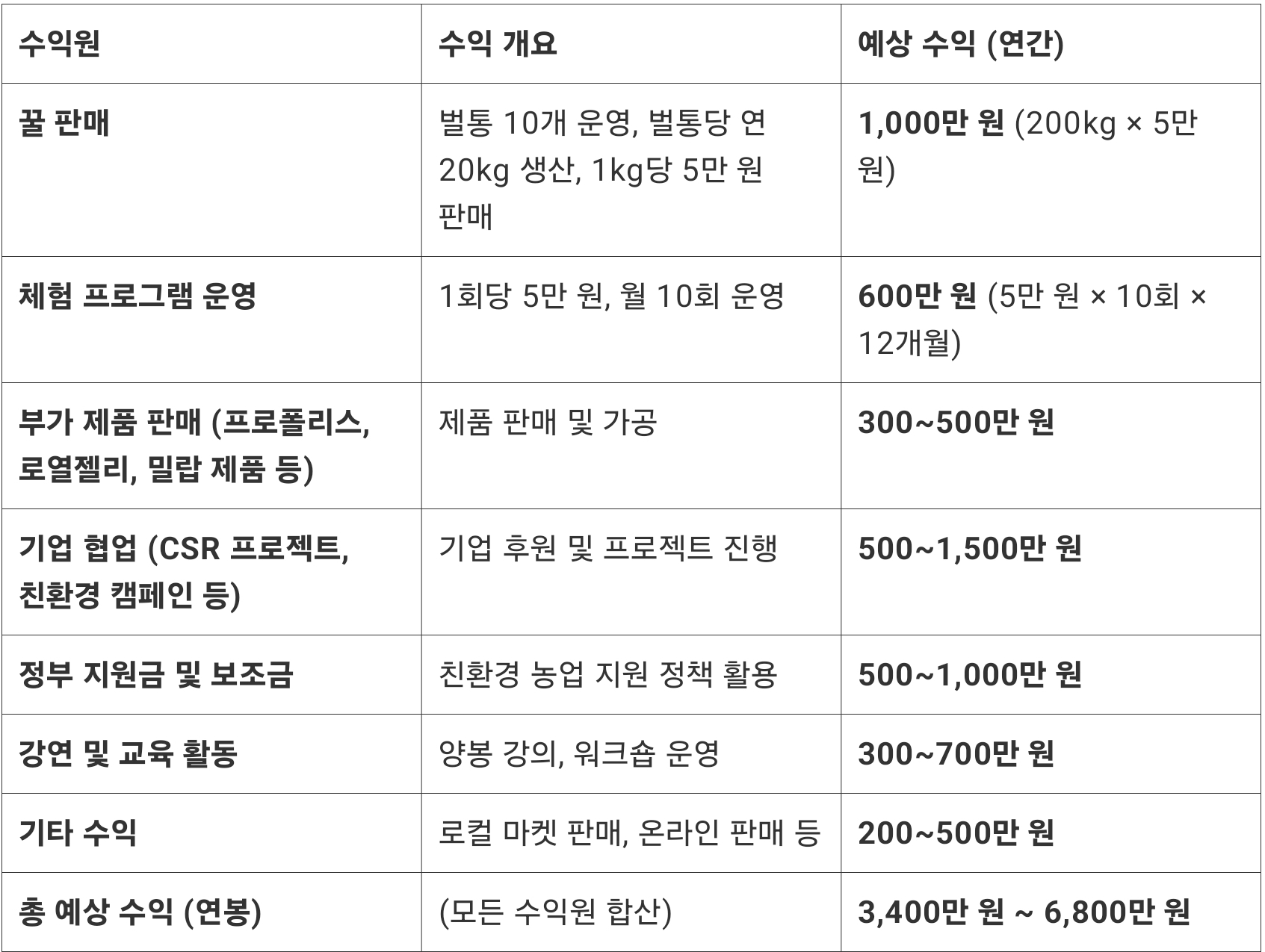 ■ 도시양봉가의 수익 구조 및 연봉 (예상 수익 표)